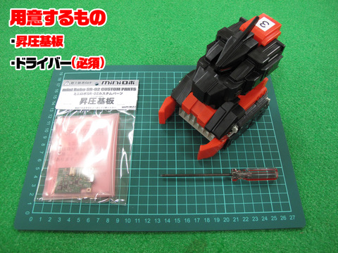今回はミニロボオプションパーツ『昇圧基板』の取り付け方法を説明いたします。
