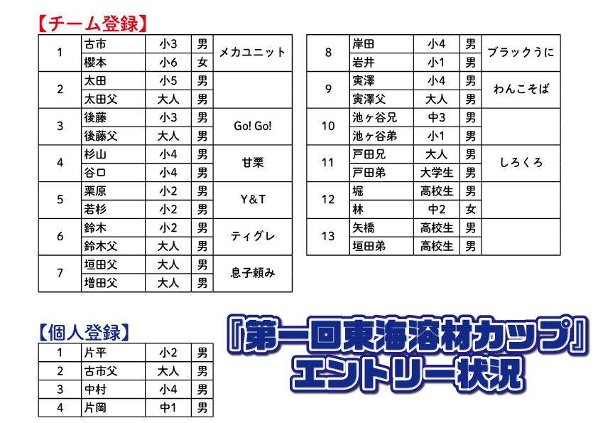 『ドリプラカップミニロボ親子大会&第一回東海溶材カップ』 ~エントリー状況~