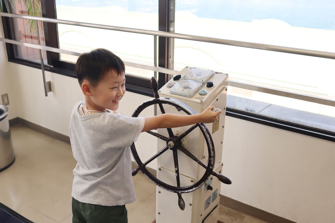 舵輪で船の操縦体験をすることも出来ます!