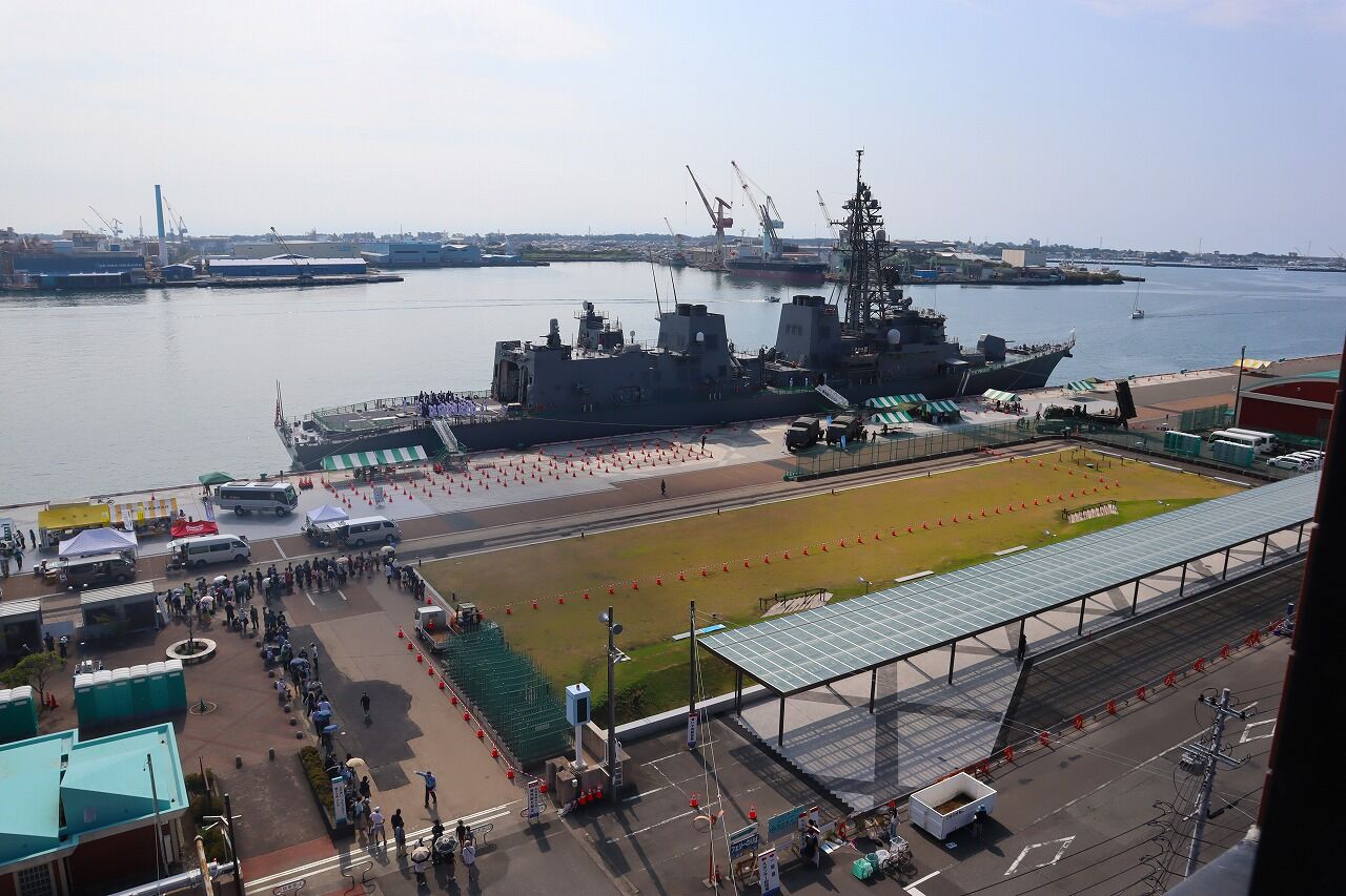 会場からはみなと祭りのために来てくれた海上自衛隊の護衛艦「たかなみ」が良く見えました!