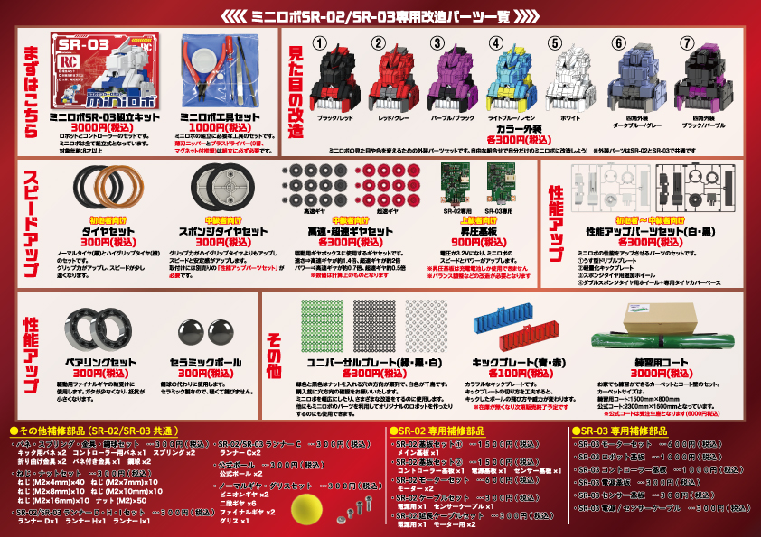 組立キットや改造パーツも販売しています。改造パーツ購入時にスタッフにご相談頂ければ、より効果の高い改造パーツや改造方法をご紹介できます。