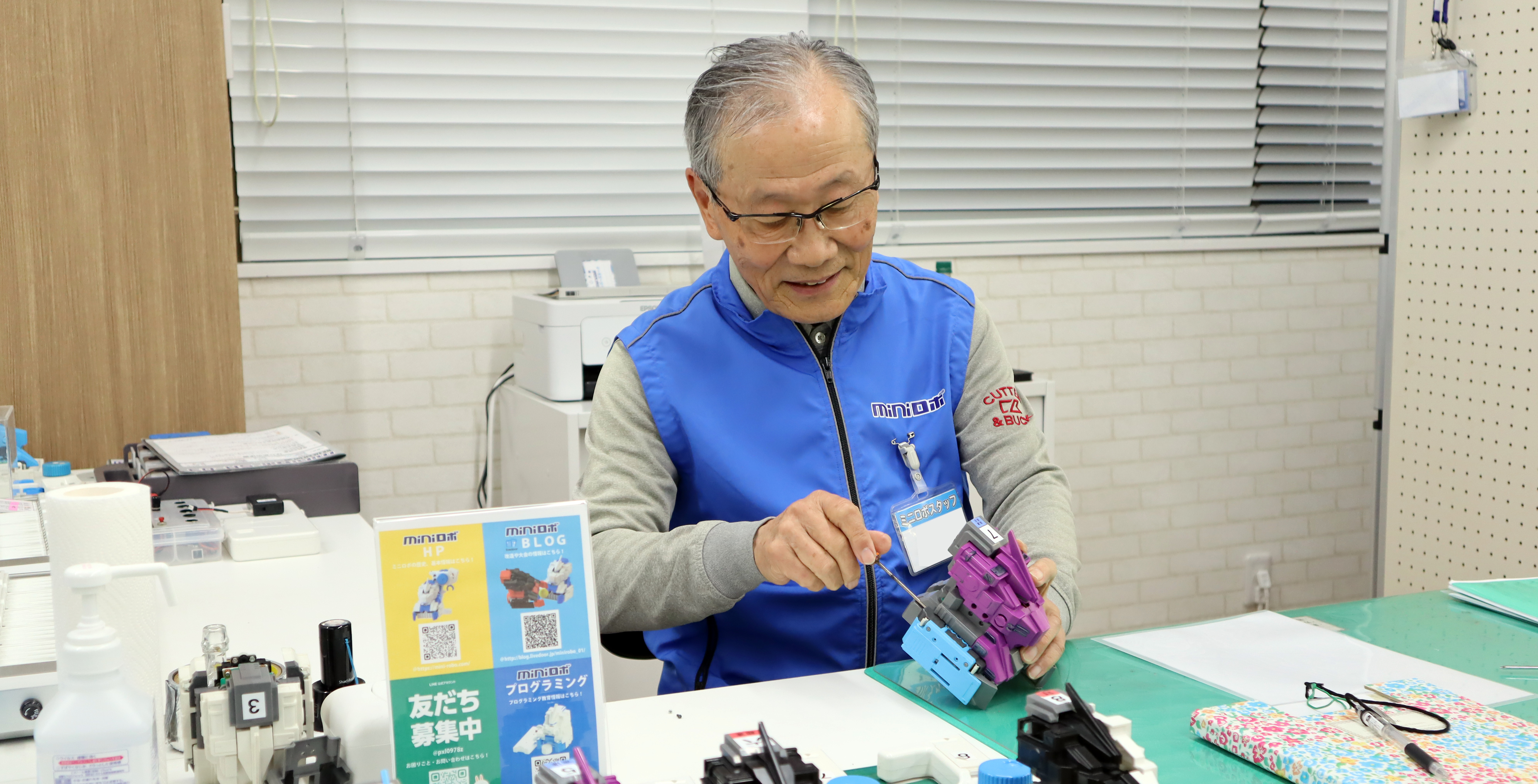 ミニロボプラザでは退職した技術者や現役の大学生がスタッフとして働いています。