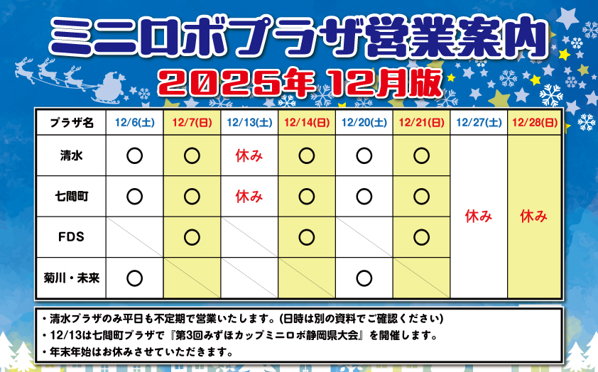 『ミニロボプラザ営業日案内』 ~2025年12月版~