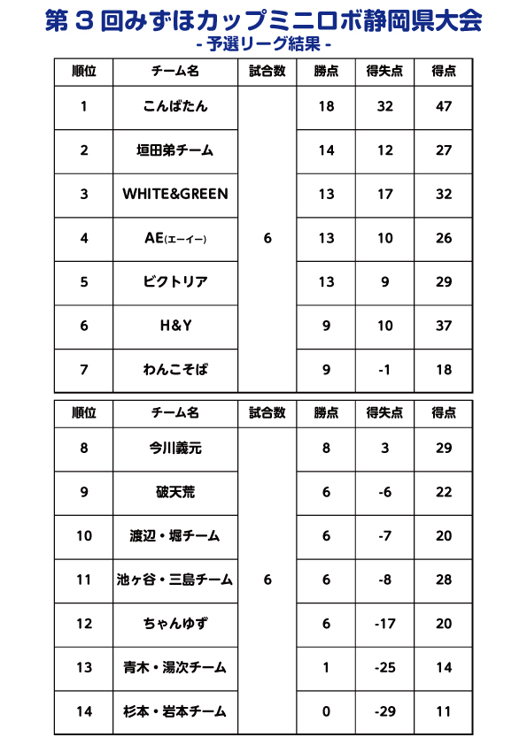 『第3回みずほカップミニロボ静岡県大会』 ~大会結果~