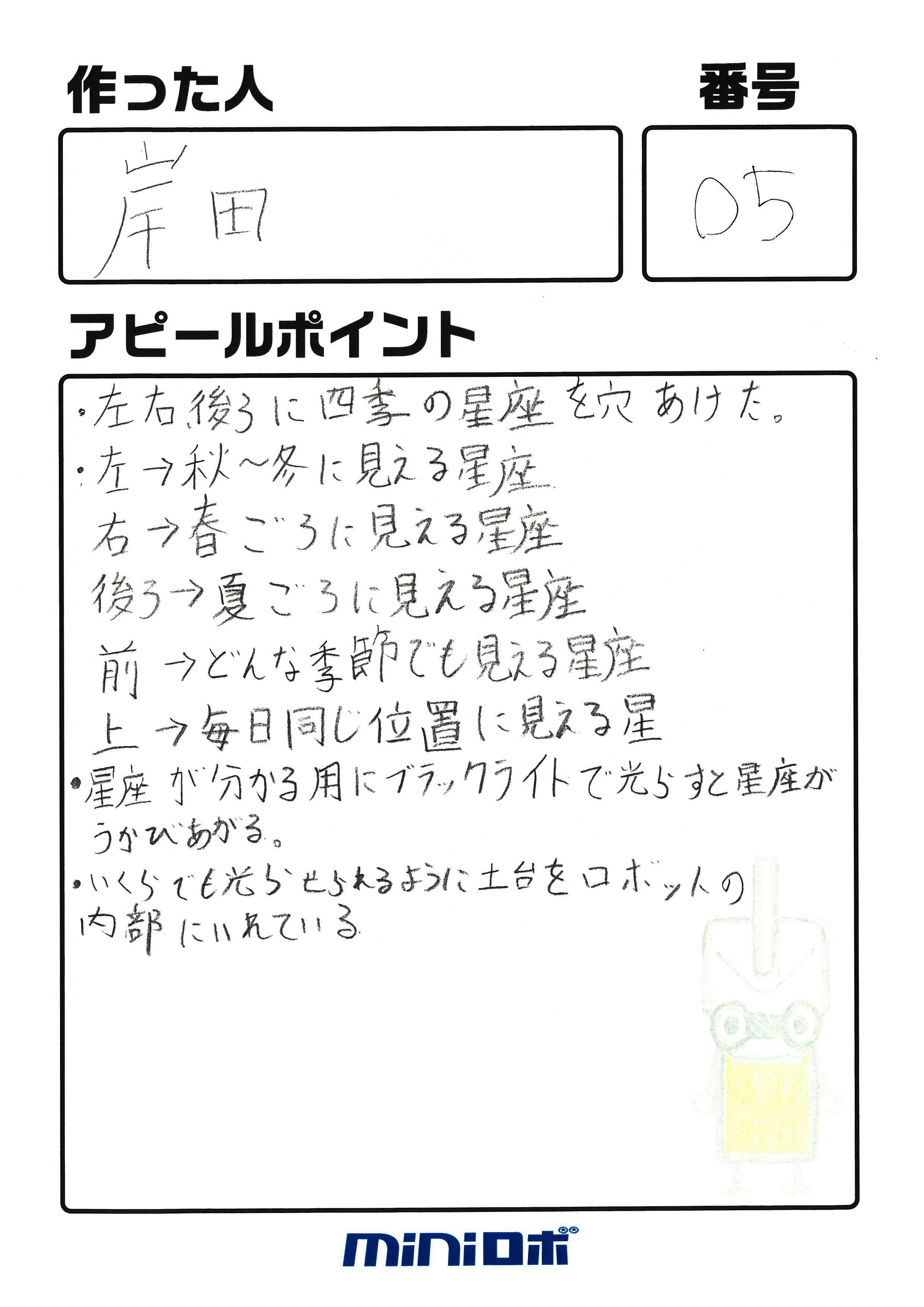 まず初めに、参加者全員のミニロボとアピールポイントをご覧ください。