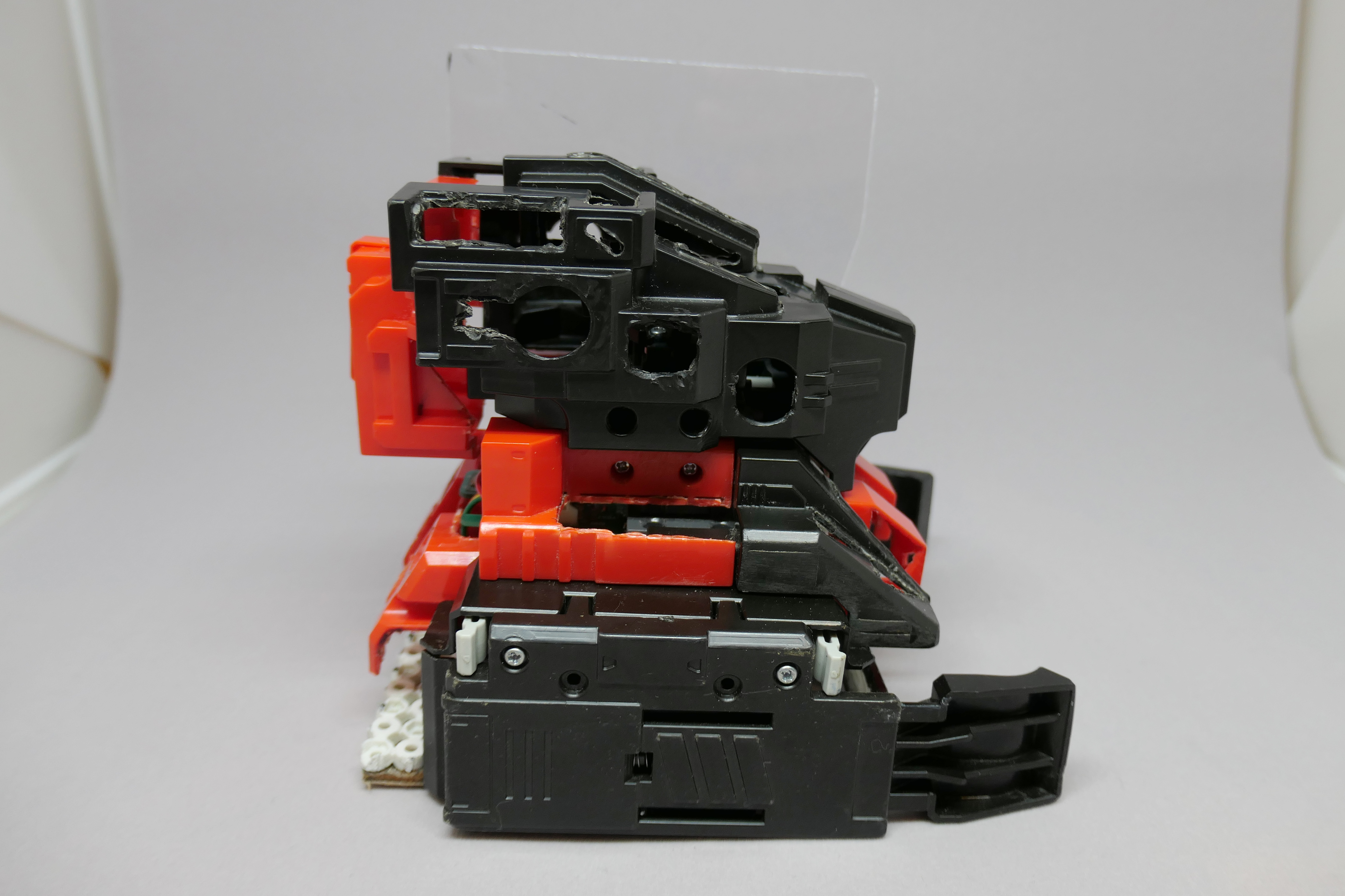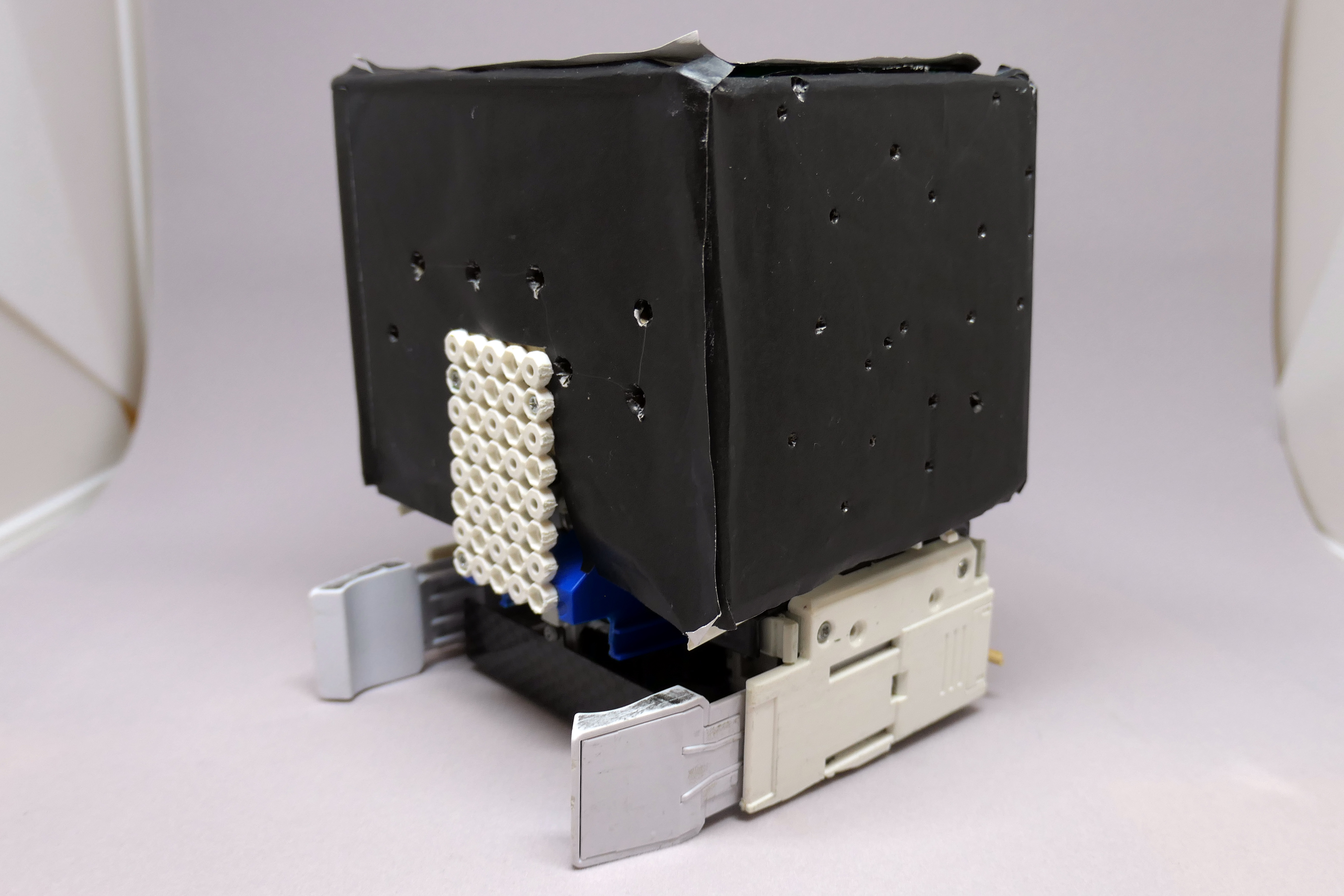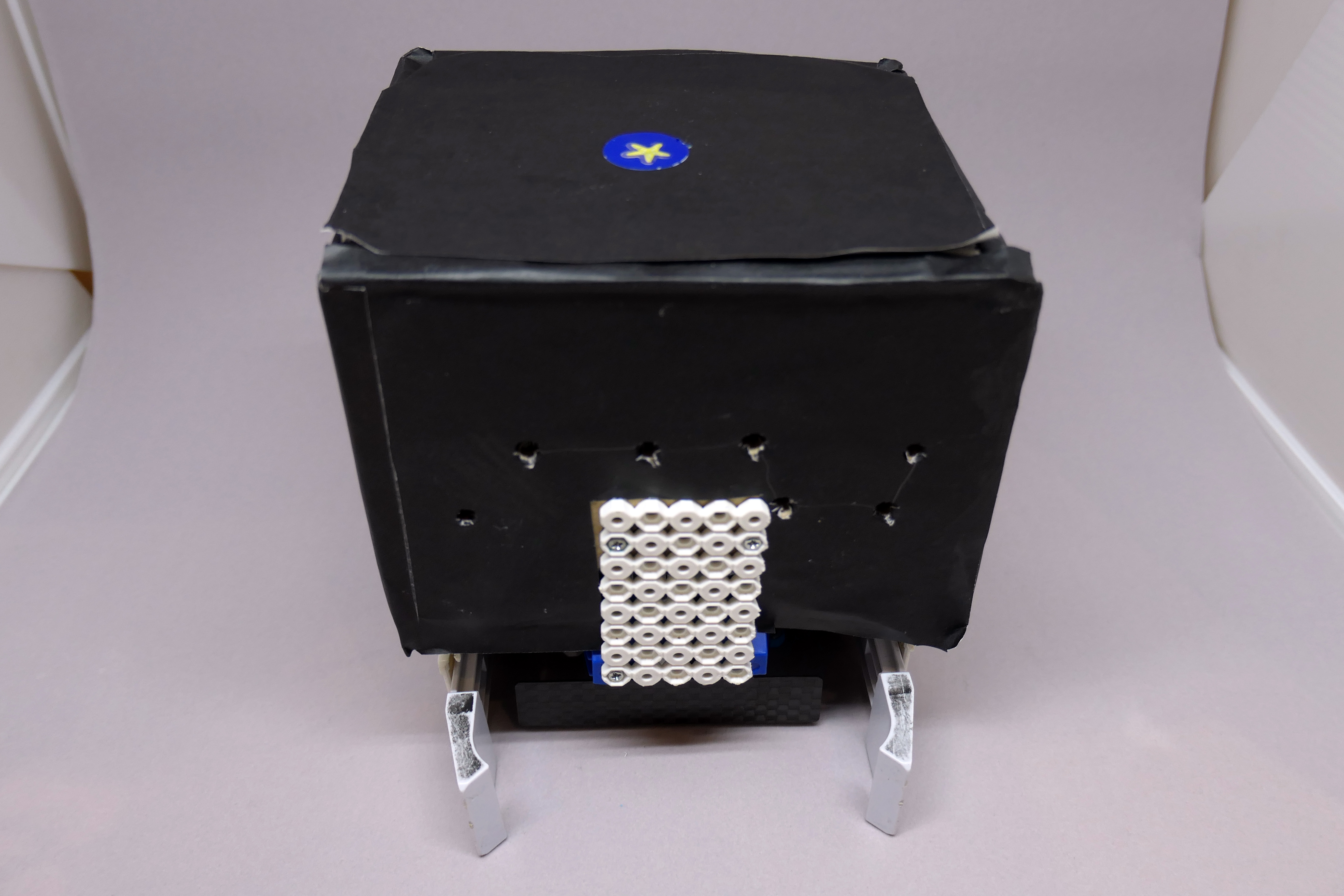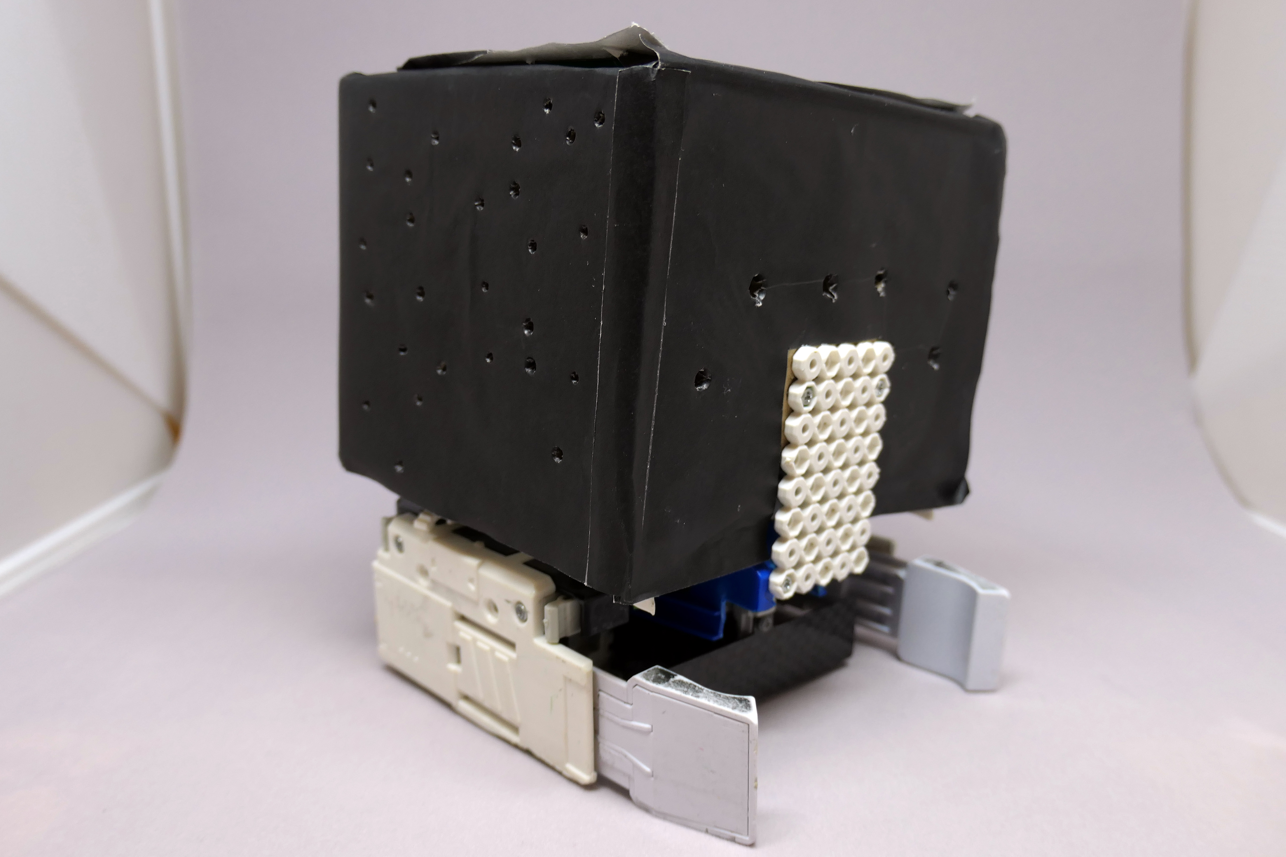 箱の中に赤色の明かりが入っています。暗いところで光らせると、上のように穴から光が漏れて星座が見えるようになっています。