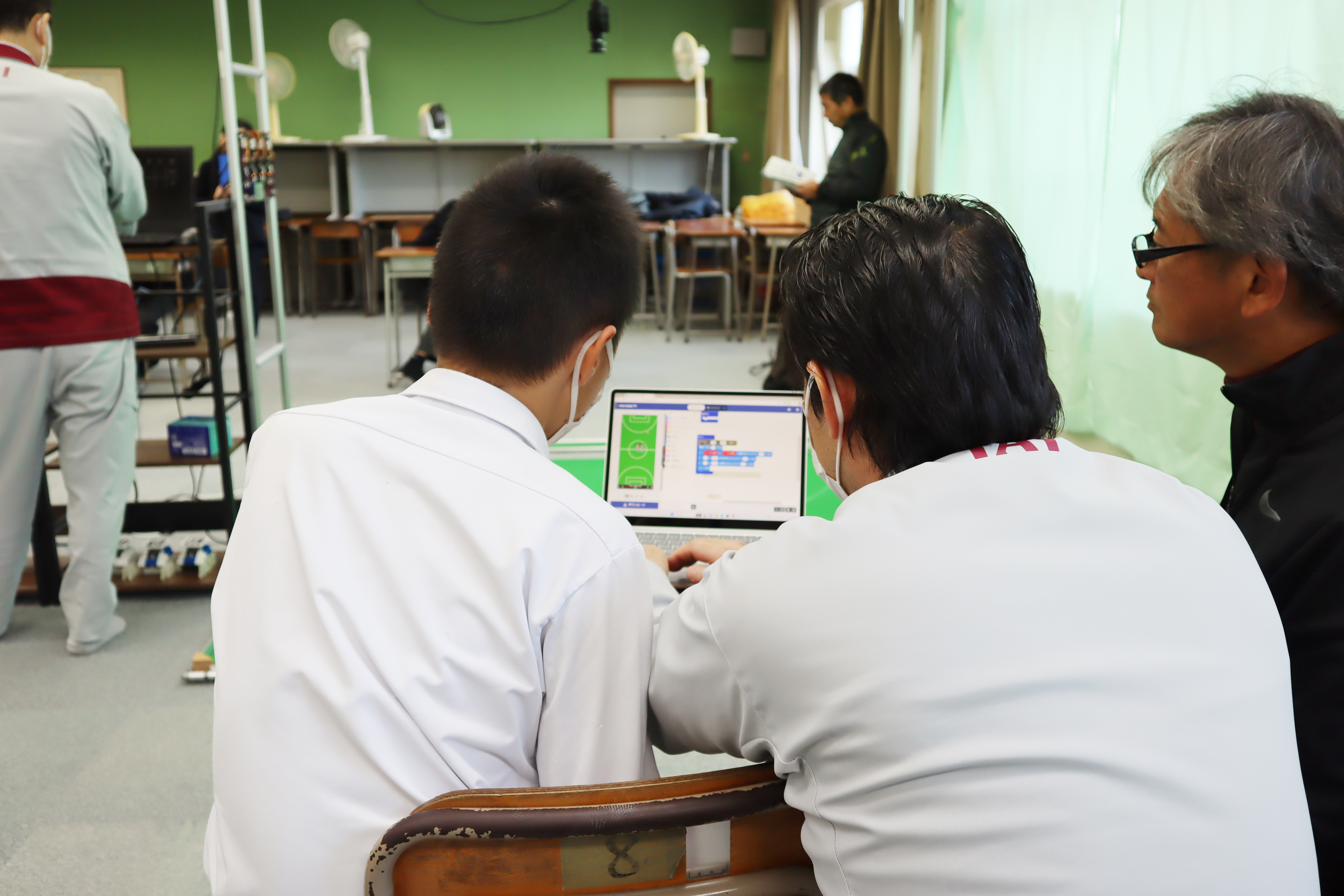 うまく動かないときは大久保さん、伊東さんがアドバイスしてくれます。トライ&エラーの繰り返しです。