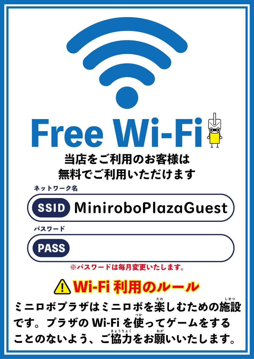 今週末から、ミニロボプラザ清水でフリーWi-Fiが利用できるようになります!